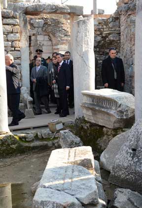 Tras finalizar su gira de Estado por Turquía, el presidente Enrique Peña Nieto acudió a esa zona arqueólogica en compañía de su esposa, Angélica Rivera. Después el Ejecutivo inició su regreso a la ciudad de México, donde hoy promulga la reforma energética, durante una ceremonia en Palacio Nacional Foto Presidencia