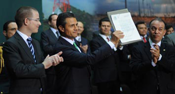 Al firmar el decreto de promulgación de la reforma, el presidente Enrique Peña Nieto dijo que los recursos energéticos deben ser