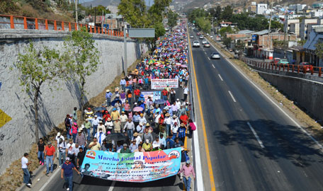 Unos 10 mil afiliados al Movimiento Popular de Guerrero se movilizaron en Chilpancingo contra las enmiendas constitucionales promovidas por el presidente Enrique Peña Nieto. Recorrieron la Autopista del Sol (imagen), avanzaron frente al Congreso local y terminaron con un mitin ante el palacio de gobierno. En Oaxaca y Michoacán también hubo protestas magisteriales. En el Distrito Federal, integrantes de la CNTE efectuaron una manifestación del Ángel a la sede de la Secretaría de Gobernación Foto Sergio Ocampo