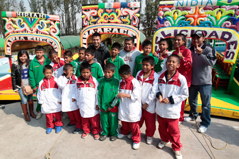 Los niños de la selección de basquetbol originarios de Oaxaca, quienes saltaron a la fama al ganar un torneo en Argentina en octubre pasado, ayer pasearon en Xochimilco en compañía de jugadores de esa delegación Foto José Antonio López