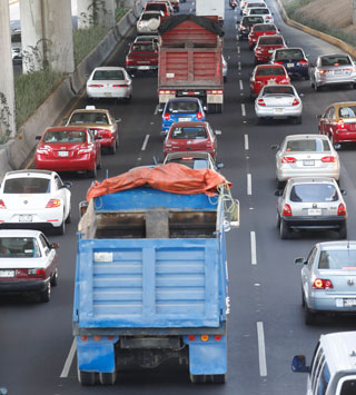 La legisladora Claudia Cortés Quiroz advirtió que la ciudad de México llegó a su límite en materia de transporte, movilidad y vialidad, lo que incide en un deficiente desarrollo económico y en mayor desgaste para los capitalinos para trasladarse de un lugar a otro. Ante este escenario, expuso, la ALDF prepara iniciativa de ley para equilibrar estos factores. De no hacerlo, alertó, iremos directo al colapso. En la imagen, camiones de carga circulan por carriles centrales del Periférico, pese a la prohibición Foto Carlos Ramos Mamahua