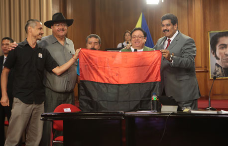 El presidente de Venezuela, Nicolás Maduro, se reunió en Caracas con descendientes de los revolucionarios mexicanos Francisco Villa y Emiliano Zapata, así como del ex presidente chileno Salvador Allende y del líder nicaragüense Augusto César Sandino Foto cortesía prensa Miraflores