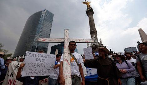 Alrededor de un millar de centroamericanos indocumentados se congregaron en el Ángel de la Independencia, luego de su periplo desde El Naranjo, en la frontera con Guatemala. Después marcharon hacia Los Pinos para solicitar una audiencia con el presidente Enrique Peña Nieto. Seis representantes fueron recibidos por funcionarios de atención ciudadana, ante quienes expresaron sus demandas: