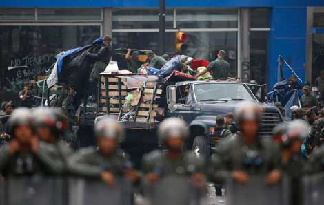 Cuatro campamentos fueron desmantelados en el este de Caracas, en una operación en la que participaron más de mil guardias nacionales y de la policía. Las autoridades señalaron que fueron incautadas bombas molotov, drogas, dinero, armas y máscaras antigás. En respuesta, jóvenes opositores realizaron protestas en al menos una docena de sitios de la capital, algunas de las cuales derivaron en enfrentamientos con las fuerzas de seguridad, con saldo de varios heridos. Un policía fue muerto por un disparo de francotirador en el municipio de Chacao Foto Reuters