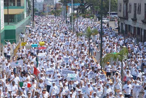 Vestidas de blanco, al menos 3 mil personas participaron en Tampico en la segunda marcha para que se ponga fin a la ola de violencia que padece la entidad, sobre todo en esa localidad. Los manifestantes desplegaron pancartas con las leyendas: