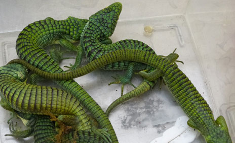 Las autoridades alemanas arrestaron a un hombre de 44 años –del cual no se reveló el nombre– tras detectar en su maleta serpientes, tortugas e iguanas, algunas de cuyas especies están en peligro de extinción. El detenido viajaba de la ciudad de México a Barcelona, España, pero su vuelo hizo escala en Frankfurt. Los animales tienen un valor total de casi 82 mil dólares Foto Ap