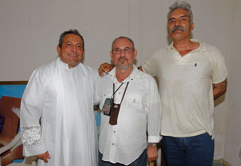 El sacerdote Gregorio Goyo López, Hipólito Mora y José Manuel Mireles se rencontraron en una misa en La Ruana, Michoacán. En entrevista con La Jornada, el dirigente recién excarcelado (al centro) dice: