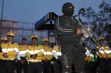 Desde las primeras horas de ayer, decenas de policías del Distrito Federal y del estado de México realizan revisiones a usuarios y unidades del transporte público en el paradero del Metro para abatir los robos. El jefe de la corporación capitalina, Jesús Rodríguez Almeida, y el titular de Seguridad mexiquense, Damián Canales, informaron que es una labor conjunta en varias estaciones, como El Rosario, La Paz e Indios Verdes, cuyas unidades transitan en ambas entidades Foto María Meléndrez Parada