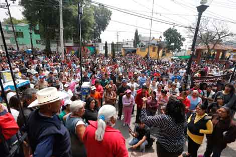 Habitantes de San Bartolo Ameyalco realizaron una asamblea en la que repudiaron al delegado de Álvaro Obregón, Leonel Luna, y lo desconocieron como autoridad. Advirtieron que no permitirán que se ponga en operación la red hidráulica que se terminó de instalar ayer en la madrugada, con la cual, aseguraron, se pretende despojar al pueblo de su manantial para dotar de agua a Santa Fe Foto Carlos Ramos Mamahua