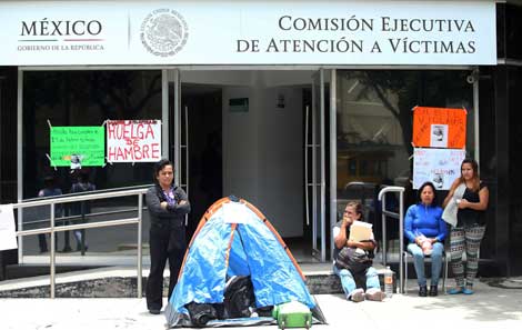 Gabriela Sánchez López, quien preside la asociación Madres Afortunadas, comenzó el ayuno frente a las instalaciones del organismo de atención a víctimas, en la colonia Del Valle, para exigir que dicha instancia cumpla con su promesa de protegerla, y que la justicia del estado de Jalisco consigne en forma adecuada a un maestro que atacó sexualmente a su hija, quien tiene discapacidad visual y mental. El profesor salió bajo fianza luego de que el juez calificó el delito como estupro, que se considera no grave. La activista aseguró que la comisión no le ha dado el apoyo necesario, pese a que ya ha sufrido siete atentados Foto Jesús Villaseca