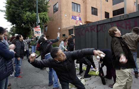 Los trabajadores realizaron un plantón frente a las instalaciones de la Asociación Sindical de Sobrecargos de Aviación (ASSA), en la colonia Del Valle, para exigir un lugar en el Comité Técnico del Fideicomiso de la Base de Mantenimiento MRO, y puedan negociar el pago de sus pensiones. En el acto realizaron pintas y lanzaron huevos al inmueble. Más tarde marcharon hacia la Secretaría del Trabajo, en Paseo de la Reforma, donde hicieron acciones similares al no ser atendidos Foto Yazmín Ortega Cortés
