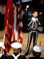 Sebastien de la Cruz, conocido como El charro de oro, entonó el himno en el partido entre San Antonio Spurs y Miami Heat. El pequeño nació en Texas, en el seno de una familia mexicana Foto Ap