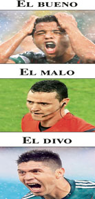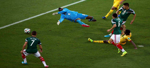 La selección mexicana de futbol debutó en el Mundial con una victoria. A pesar de la lluvia y de un pésimo arbitraje, domesticó a los llamados leones indomables de Samuel Eto’o. La escuadra nacional fue muy superior a Camerún, pero el asistente colombiano Humberto Clavijo señaló dos inexistentes fuera de lugar y anuló así un par de goles legítimos de Giovani dos Santos. En el minuto 60 Oribe Peralta hizo el tanto del triunfo. En las imágenes de la derecha, Gio, el árbitro Wilmar Roldán y el anotador Fotos Reuters y Ap