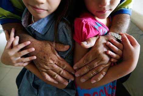 Un abuelo hondureño y sus nietas de siete y 12 años esperan en la estación migratoria de Tapachula, Chiapas, para su deportación. El gobierno mexicano participará hoy en una cónclave regional en Nicaragua para insistir en la necesidad de emprender una campaña de información para desalentar la salida de menores de edad hacia Estados Unidos Foto Alfredo Domínguez