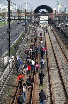 Cientos de usuarios de la línea A del Metro resultaron afectados la mañana de ayer por una falla en los conductores de energía eléctrica de los trenes, lo que provocó la suspensión del servicio por casi ocho horas en las estaciones Peñón Viejo y Acatitla Foto La Jornada
