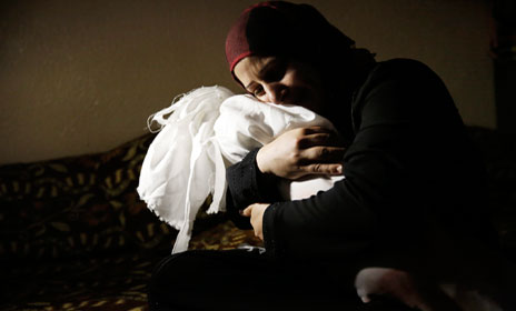 Una mamá palestina durante la ceremonia funeraria de su hija de un año, quien falleció el jueves debido a los ataques israelíes sobre la franja de Gaza. En el primer día de ofensiva terrestre, las tropas de Tel Aviv atacaron 150 objetivos, incluidos edificios en áreas pobladas y túneles que comunican la zona con Israel y Egipto. La ONU informó que 80 por ciento de las víctimas son civiles y que en un día se duplicó de 20 mil a 40 mil la cantidad de personas que buscaron refugio en sus instalaciones Foto Reuters