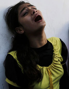 Tel Aviv realizó ayer un nuevo ataque contra una escuela de la ONU que servía de refugio a palestinos: allí murieron 16 personas. El secretario general del organismo internacional, Ban Ki-moon, calificó el hecho de auténtica masacre. Tras la jornada del jueves, la cifra de muertos superó los 800 y la de heridos llegó a 4 mil 750. En la imagen, una joven desplazada que se guarecía en un hospital al norte de Gaza muestra su pesar por el fallecimiento de familiares Foto Ap