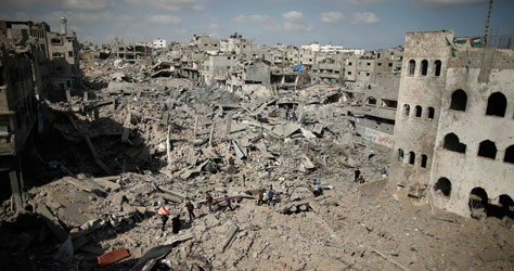 Devastación en el barrio de Shejaia, en la franja de Gaza, al cumplirse 19 días de la ofensiva israelí, que ha dejado unos 6 mil heridos y alrededor de 160 mil desplazados. Tel Aviv acordó mantener una tregua humanitaria, que concluirá a la medianoche de este domingo, con el fin de que se suministre ayuda a ese territorio Foto Reuters
