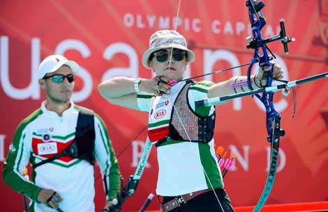 La atleta mexicana obtuvo las preseas de manera individual y en la categoría mixta con Luis Eduardo Vélez (atrás a la izquierda), en la modalidad de arco recurvo. Los galardones los logró en la Final de Copas del Mundo de la especialidad, realizada en Lausana, Suiza. La capitalina se convirtió en la primera connacional en la historia en conquistar el metal dorado en el certamen instaurado en 2006, que reúne a los mejores exponentes del tiro con arco durante un serial de cuatro fechas Foto Ap