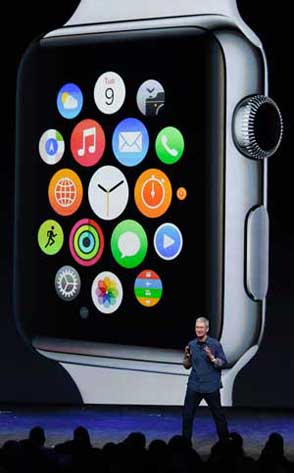 Tim Cook, presidente ejecutivo de Apple, presentó en el cuartel de la compañía en Silicon Valley el Apple Watch, el reloj de mano inteligente que se enlaza con el iPhone Foto Xinhua