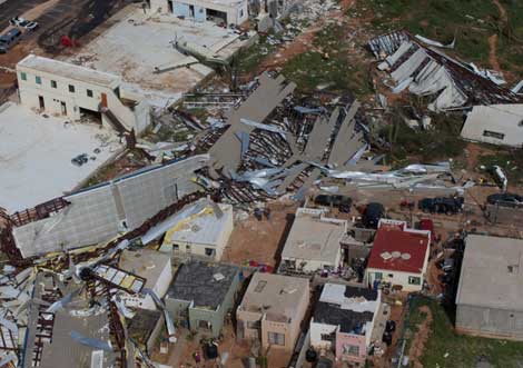 Destrucción en la colindancia del aeropuerto de Los Cabos, Baja California Sur, con zonas habitacionales. Odile tocó tierra en esta localidad el pasado domingo a las 20 horas, con vientos hasta de 205 kilómetros por hora Foto Presidencia