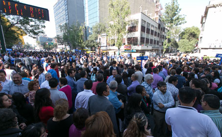 Más de 6 millones de personas participaron en el desalojo de miles de edificios en el Distrito Federal, como parte de un simulacro organizado por autoridades capitalinas en el contexto del aniversario del sismo del 19 de septiembre de 1985. Bajo el supuesto de un temblor de intensidad de 7.6 grados Richter, se activaron los protocolos de emergencia para detectar y atender posibles daños materiales y personales. En Querétaro y el estado de México se efectuaron ejercicios similares Foto Pablo Ramos García