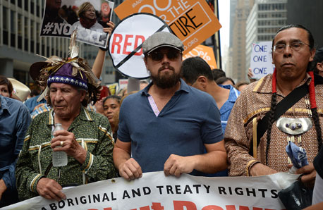 El actor Leonardo DiCaprio participó en Nueva York en la Marcha Global Ciudadana contra el Cambio Climático. A la multitudinaria movilización acudió una gran diversidad de organizaciones, entre ellos de ambientalistas, de migrantes y de indígenas, así como sindicalistas, académicos, estudiantes, médicos y religiosos. ¡Exxon, Mobil y Goldman Sachs, quítenme sus crisis de la espalda!, se coreaba en las calles Xinhua