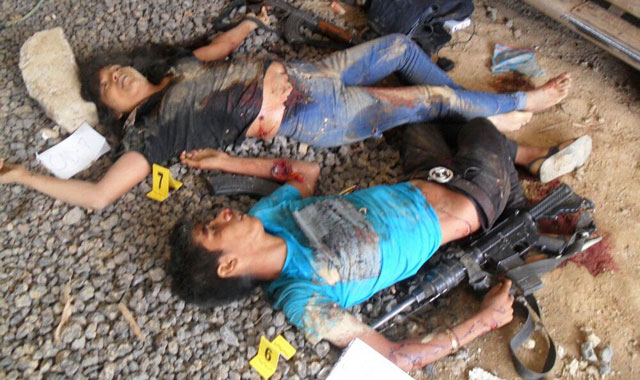 sembradosen ese lugar, toda vez que presentan manchas de lodo en sus ropas y la alineación de las armas está fuera de una lógica de enfrentamiento Foto agencia MVT