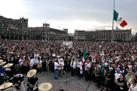 Miles de personas colmaron el Zócalo capitalino por el 46 aniversario de la matanza estudiantil de 1968. En el acto, los organizadores señalaron que se pedirá que se reabra el juicio contra el ex presidente Luis Echeverría, como responsable de esos hechos en la Plaza de las Tres Culturas Foto Marco Peláez