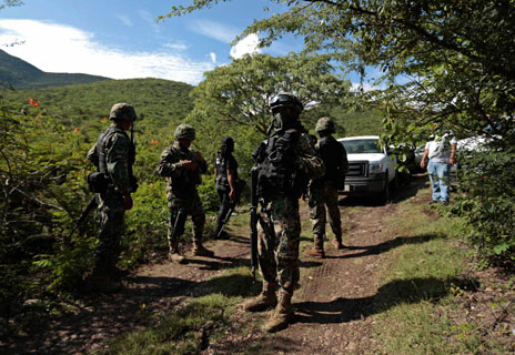 Militares resguardan la zona donde fueron encontradas varias fosas clandestinas, en las afueras de Iguala, Guerrero. El procurador de justicia estatal, Iñaki Blanco Cabrera, reveló que hay evidencias “del involucramiento de la delincuencia organizada, en particular del cártel de los Guerreros Unidos, del que varios elementos de la policía municipal son parte” Foto Reuters