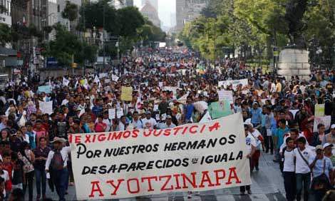 Miles de personas se sumaron a la exigencia a los gobierno federal y de Guerrero para esclarecer la desaparición de 43 estudiantes de la Escuela Normal Rural de Ayotzinapa, en la marcha del Ángel de la Independencia al Zócalo. Demandaron castigo para los autores materiales e intelectuales de los ataques contra los alumnos. Padres de familia de las víctimas sostuvieron: fueron policías municipales quienes se los llevaron y nos quieren hacer creer que fue el crimen organizado Foto Carlos Ramos Mamahua