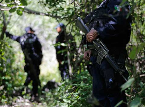 Policías vigilan una zona cercana a la ciudad de Iguala, donde han sido halladas una serie de fosas con más de cuarenta cuerpos, según los últimos reportes de autoridades federales Foto Reuters