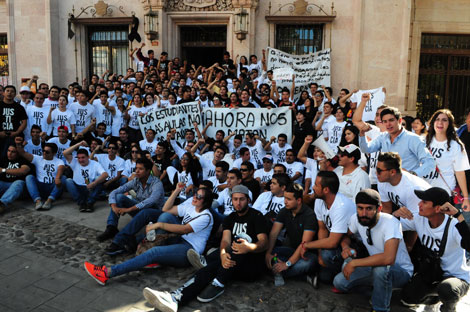 Alumnos de la Universidad de Guadalajara y de la Universidad de Guanajuato se unieron en una movilización para exigir al gobierno de esta última entidad que esclarezca la muerte de Ricardo Esparza Villegas, estudiante de ingeniería en mecatrónica, quien fue hallado muerto tras acudir con 80 compañeros al Festival Internacional Cervantino. Autoridades afirmaron que falleció al caer de una azotea cuando intentaba robar una casa Foto Carlos García Balandrán