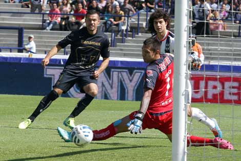 El conjunto universitario se aplicó al máximo en la última jornada del torneo regular para meterse a la pelea por el campeonato. Apenas en el minuto cinco, el paraguayo Dante López (en la imagen) entró solo al área del Monterrey para vencer con un tiro cruzado a Jonathan Orozco. Los otros tantos de los Pumas fueron de David Cabrera y dos de Eduardo Herrera, uno de penal. Por los Rayados descontaron Omar Arellano y Cándido Ramírez Foto Notimex
