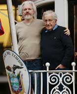 El fundador de Wikileaks y el lingüista estadunidense salieron a un balcón de la embajada de Ecuador en Londres, donde el ex hacker australiano está refugiado Foto Xinhua