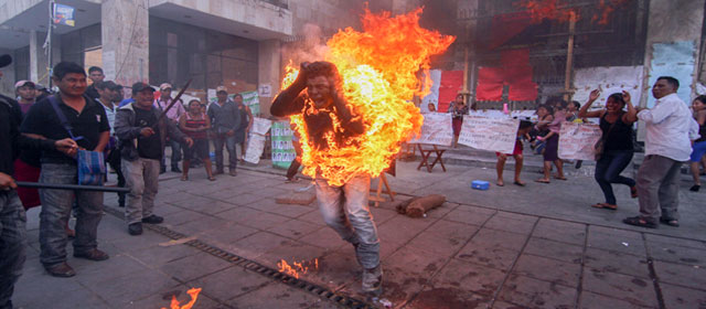 El campesino Agustín Gómez Pérez, de 18 años, se roció con gasolina y pidió que le prendieran fuego ante la sede del Legislativo, en Tuxtla Gutiérrez, para exigir la liberación de su tío Florentino Gómez Girón, dirigente agrario preso desde el primero de mayo pasado en el penal de El Amate, acusado de abigeato,