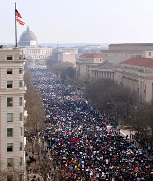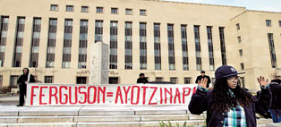 Miles de manifestantes, incluidos familiares de víctimas de homicidios recientes cometidos por policías, marcharon en Washington (en la imagen) y Nueva York. Repitieron consignas que se han vuelto emblemáticas, como No puedo respirar, en referencia a las últimas palabras del joven negro a quien estranguló un policía. Pancartas y camisetas llevaban el lema Las vidas negras importan, entre otros. Frente a un tribunal (imagen de la derecha) señalaron que de Ferguson a Ayotzinapa hay una sola lucha. En México, realizadores y artistas de cine se sumaron a la demanda de justicia por los normalistas desaparecidos Fotos Xinhua y Ap