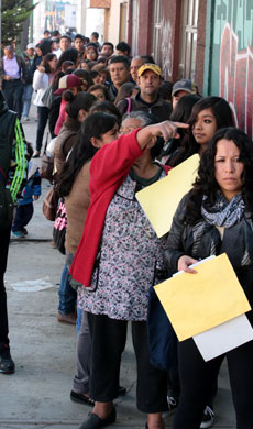 Hoy concluye el plazo para renovar la credencial de elector y hay al menos millón y medio de ciudadanos pendientes de realizar ese trámite. Ayer hubo largas filas frente a los módulos del INE. La imagen corresponde a la oficina ubicada en San Bartolo Atepehuacán, en la delegación Gustavo A. Madero Foto Francisco Olvera