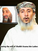 Por medio de un video, Al Qaeda se atribuyó el ataque contra el semanario Charlie Hebdo, ordenado por su líder, Ayman al Zawahiri. En la imagen se observa al comandante de esa rama en Yemen, Nasr al Ansi, y en un recuadro a Osama bin Laden Foto Reuters