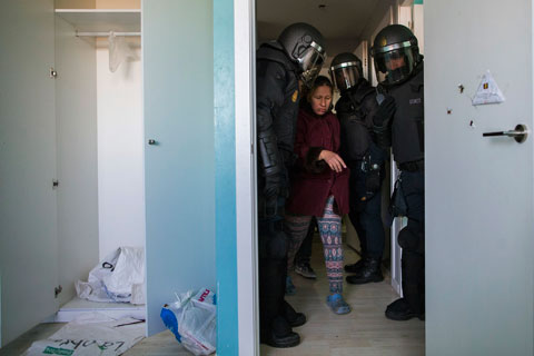 Policías antimotines de España desalojan a una familia ecuatoriana de su departamento rentado, luego de que el gobierno lo vendió a una empresa privada que posee otras mil 800 viviendas construidas inicialmente para apoyar a personas de escasos recursos. Cecilia Paredes, de 43 años, perdió su empleo como cuidadora de un anciano hace dos años, y su esposo, Wilson Ruilova, quien es electricista, tampoco trabaja, por lo que les fue imposible pagar el alquiler. El matrimonio tiene un bebé de apenas dos meses y dos hijos de siete y 16 años Foto Ap