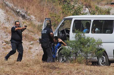 Policías federales que resguardaban la Autopista del Sol a la altura de la caseta de cobro Palo Alto, en Chilpancingo, detuvieron ayer a 14 estudiantes de la Escuela Superior de Educación Física que se dirigían a esa ciudad provenientes de Acapulco. Los jóvenes, que viajaban en dos camionetas, fueron perseguidos, encañonados con pistolas y rifles, esposados y trasladados a las instalaciones de esa corporación en la capital del estado. Más tarde fueron liberados, ante la presión de alumnos de Ayotzinapa y maestros de la Ceteg. Más de mil 700 agentes fueron enviados para blindar esa vía Foto Cuartoscuro