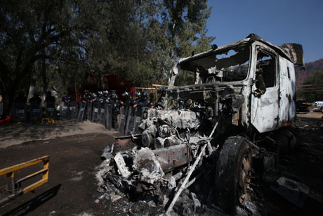 Integrantes del Frente Popular Francisco Villa y agremiados del Sindicato Mexicano de Electricista se enfrentaron en la mañana de ayer por la posesión de un predio ubicado en la colonia Zapotitla; en la trifulca resultaron heridas tres personas. Se informó que un tráiler y una camioneta fueron quemados y a dos microbuses les rompieron los vidrios. Al menos 300 granaderos fueron enviados para evitar más choques y resguardar el lugar, el cual se dijo que era para asentar a cientos de familias que buscan vivienda Foto Alfredo Domínguez