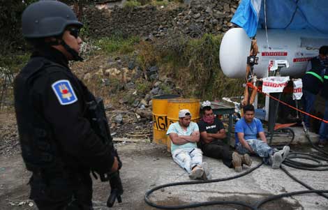Cinco personas fueron detenidas en la calle Emiliano Zapata, sin número, colonia San Andrés Totoltepec. En el lugar había varias pipas y tanques de gas de uso doméstico, así como un túnel subterráneo. Autoridades señalaron que al parecer el combustible se vendía a unidades del transporte público y vecinos de la zona. En la operación participaron 120 integrantes de las secretarías de Seguridad Pública y de Protección Civil. También de la Fiscalía Ambiental capitalina y de la Agencia de Seguridad Industrial de Protección al Ambiente Foto Alfredo Domínguez