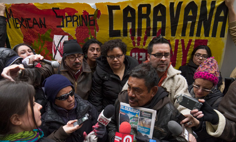 El profesor Felipe de la Cruz, representante y vocero de las familias de los estudiantes de Ayotzinapa desaparecidos, dijo frente al consultado de México en Nueva York que tocarán
