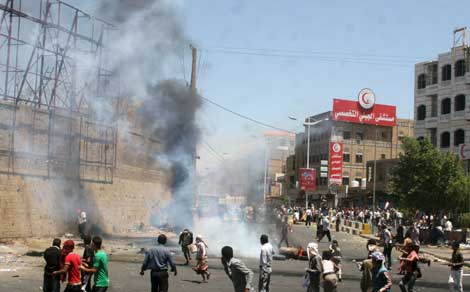 Miles de habitantes de Taez protestaron en las calles por la invasión de milicianos chiítas hutíes, quienes se apoderaron del aeropuerto y otros puntos estratégicos de la localidad en su avance hacia el sur del país. Los rebeldes dispersaron a los manifestantes con disparos al aire y con garrotes. Ahora controlan, además de la capital, Saná, nueve de las 21 provincias de Yemen. El presidente Abed Rabbo Mansur Hadi, quien estableció su gobierno en la sureña ciudad de Adén, dijo que la ocupación es un golpe a la legitimidad constitucional Foto Reuters