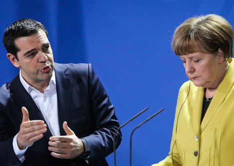 El primer ministro griego Alexis Tsipras y la canciller alemana Angela Merkel ofrecieron una conferencia de prensa, luego del encuentro en Berlín entre los dos jefes de gobierno. Ambos señalaron que Europa debe superar los estereotipos que muestran a Grecia como un país de gente floja y a Alemania como una nación impositiva sobre ese continente Foto Xinhua