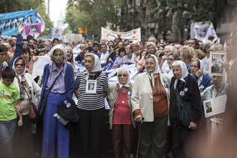 Integrantes de la agrupación Madres de Plaza de Mayo encabezaron en Buenos Aires la marcha de cientos de miles de personas para rememorar el golpe cívico –militar que instaló en 1976 la más cruenta dictadura en la historia del país. Las proclamas más repetidas fueron: