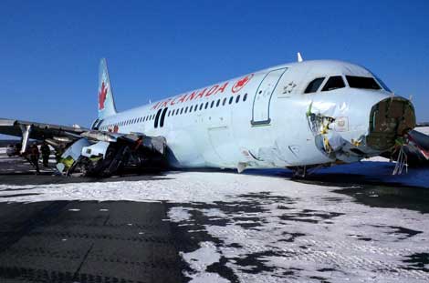 El avión Airbus A320, que estaba a punto de aterrizar en el aeropuerto de Halifax con 133 pasajeros a bordo y cinco tripulantes, perdió el tren de aterrizaje principal al golpear una red de antenas, lo que lo forzó a deslizarse violentamente en la pista. Hubo 23 heridos, pero sólo uno permanecía hospitalizado el domingo por la noche. Por la fuerza del impacto algunos pasajeros pensaron que se habían estrellado Foto Ap