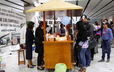 Los trabajadores inauguraron este fin de semana el local junto al plantón permanente que sostienen desde hace un año y nueve meses frente a los mostradores de la aerolínea, en demanda del pago de sus pensiones. Señalaron que desde el cierre de la empresa, en agosto de 2010, comenzaron a retrasarse las entregas de las jubilaciones hasta que de plano se dejaron de cubrir Foto María Luisa Severiano