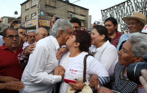 Para Andrés Manuel López Obrador fue una faramalla el encuentro que sostuvieron los dirigentes de varios partidos políticos con el titular de la Secretaría de Gobernación en un intento de blindar las elecciones. De gira por Coyoacán, descartó que vaya a aceptar que se brinde seguridad a los candidatos, pues la protección se tiene que dar al pueblo Foto Roberto García Ortiz